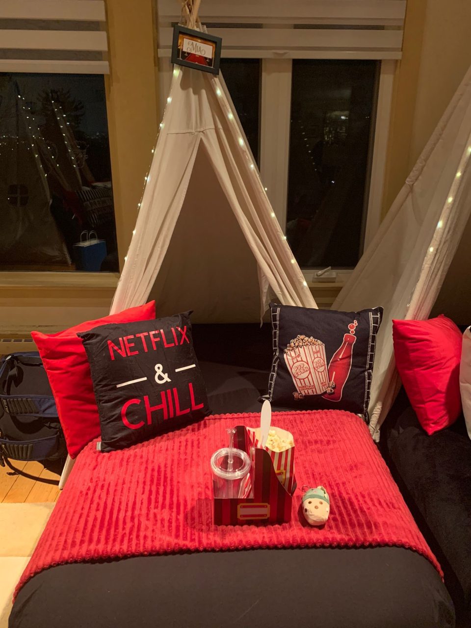 Popcorn printed movie night magic themed square decorative throw pillow covers. Perfect add on to your home, bed, living room, sleepover tent, kids room, birthday party, Netflix theme celebration, movie night etc. Made with durable and high quality polyester material. Zip closure for ease.