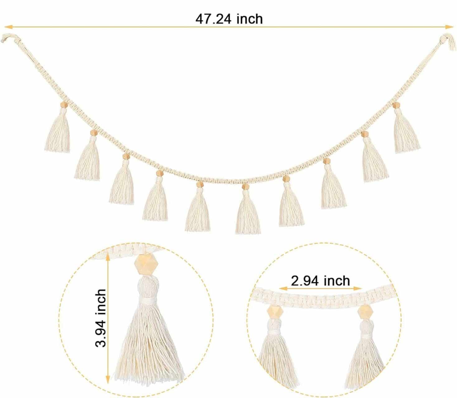 Size: Each tassel is 3.5 inches high. Each garland is 47.24 inches long.