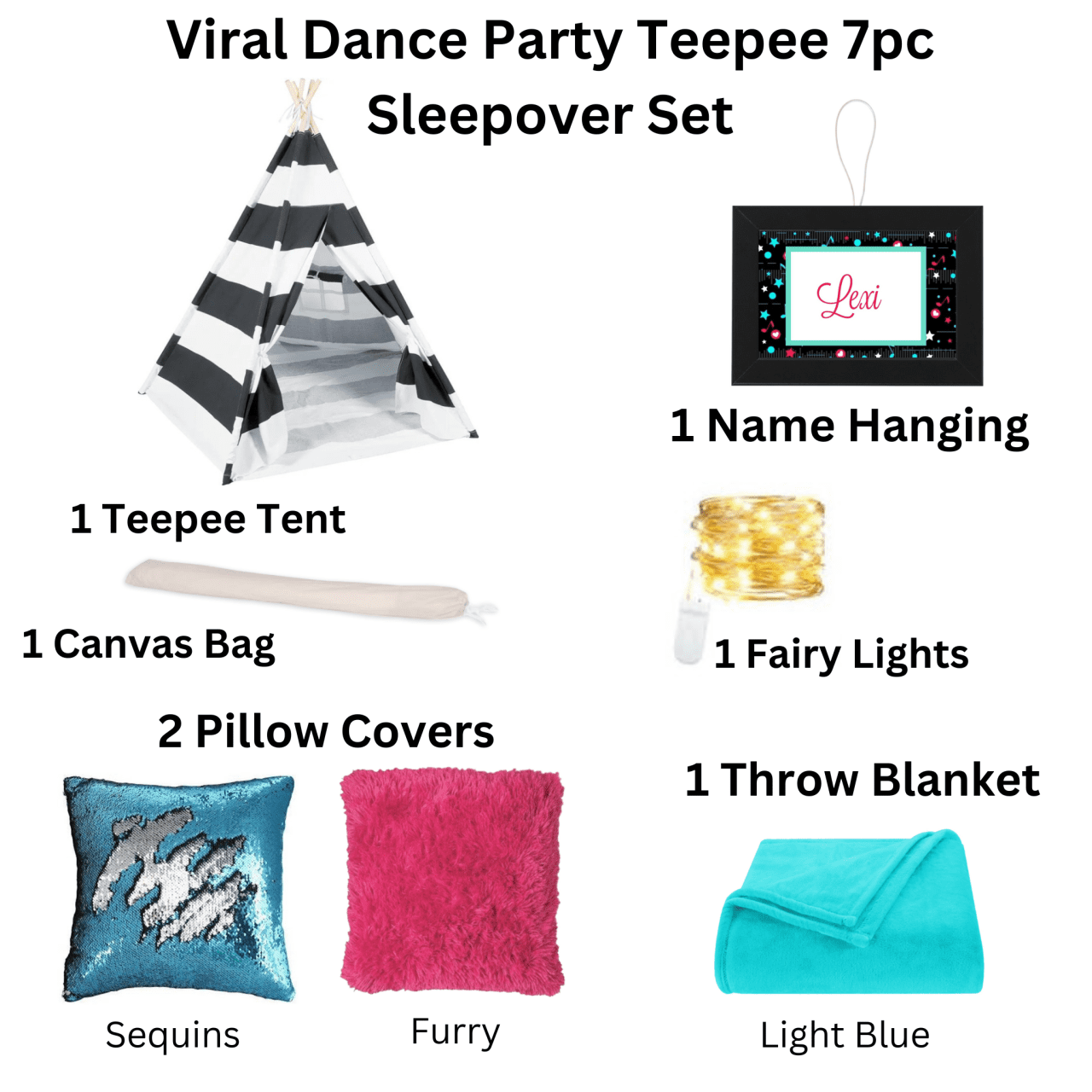 Viral Dance Party Teepee 7 pc Sleepover Set