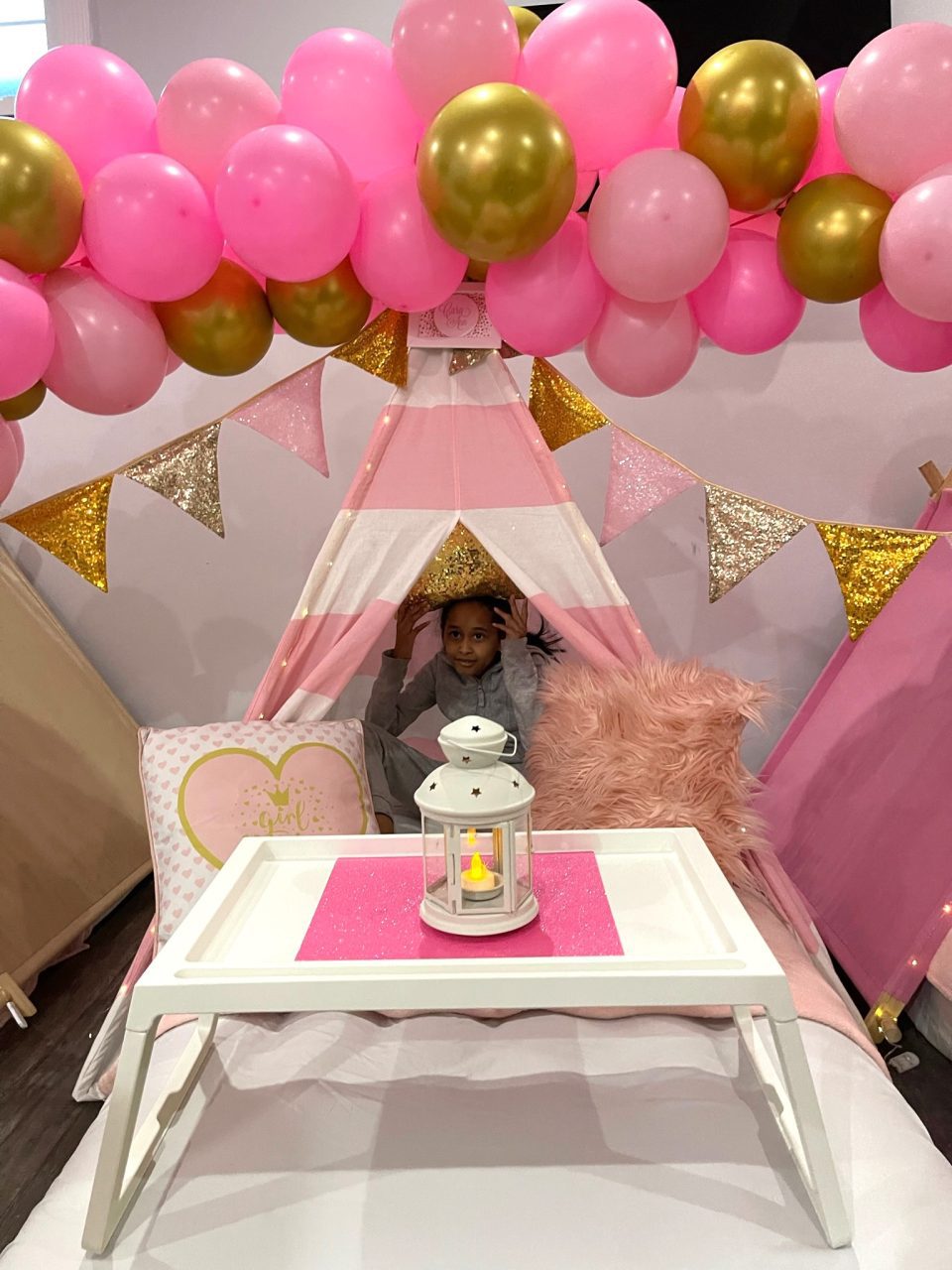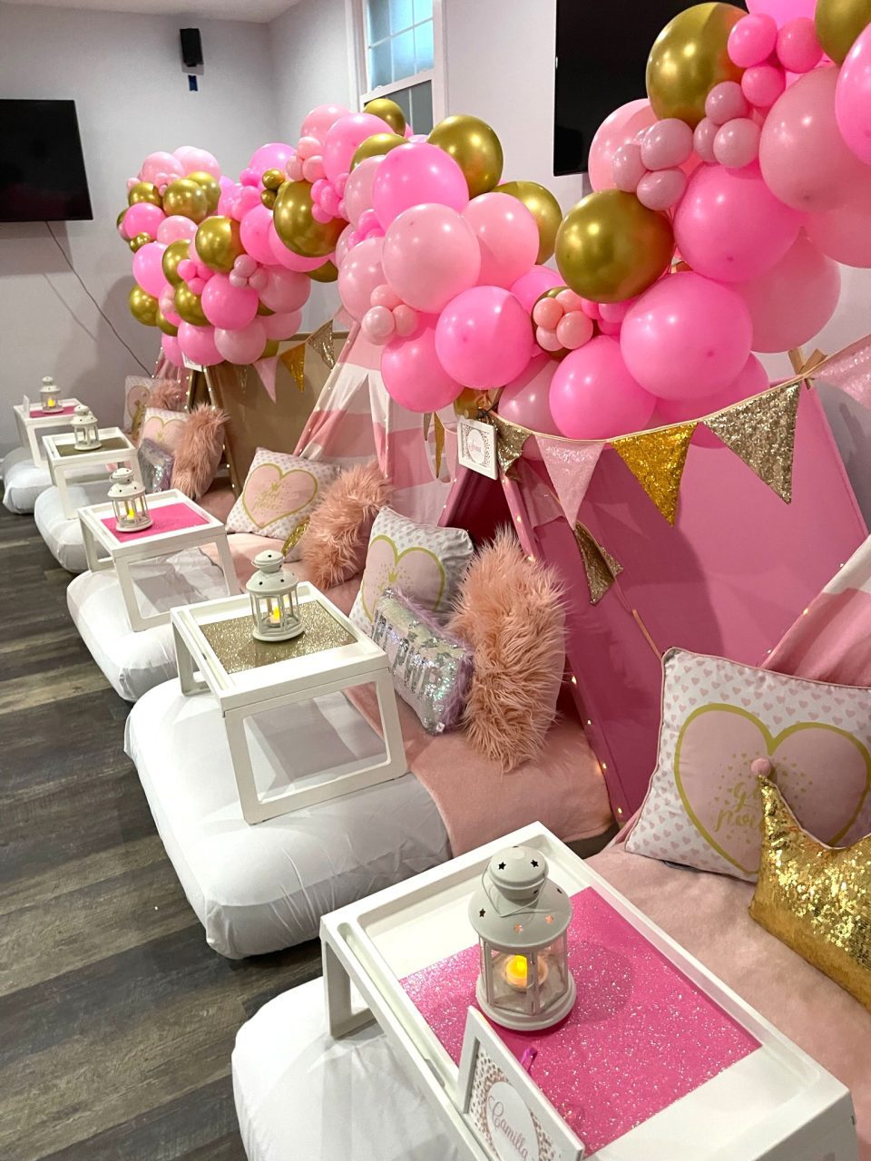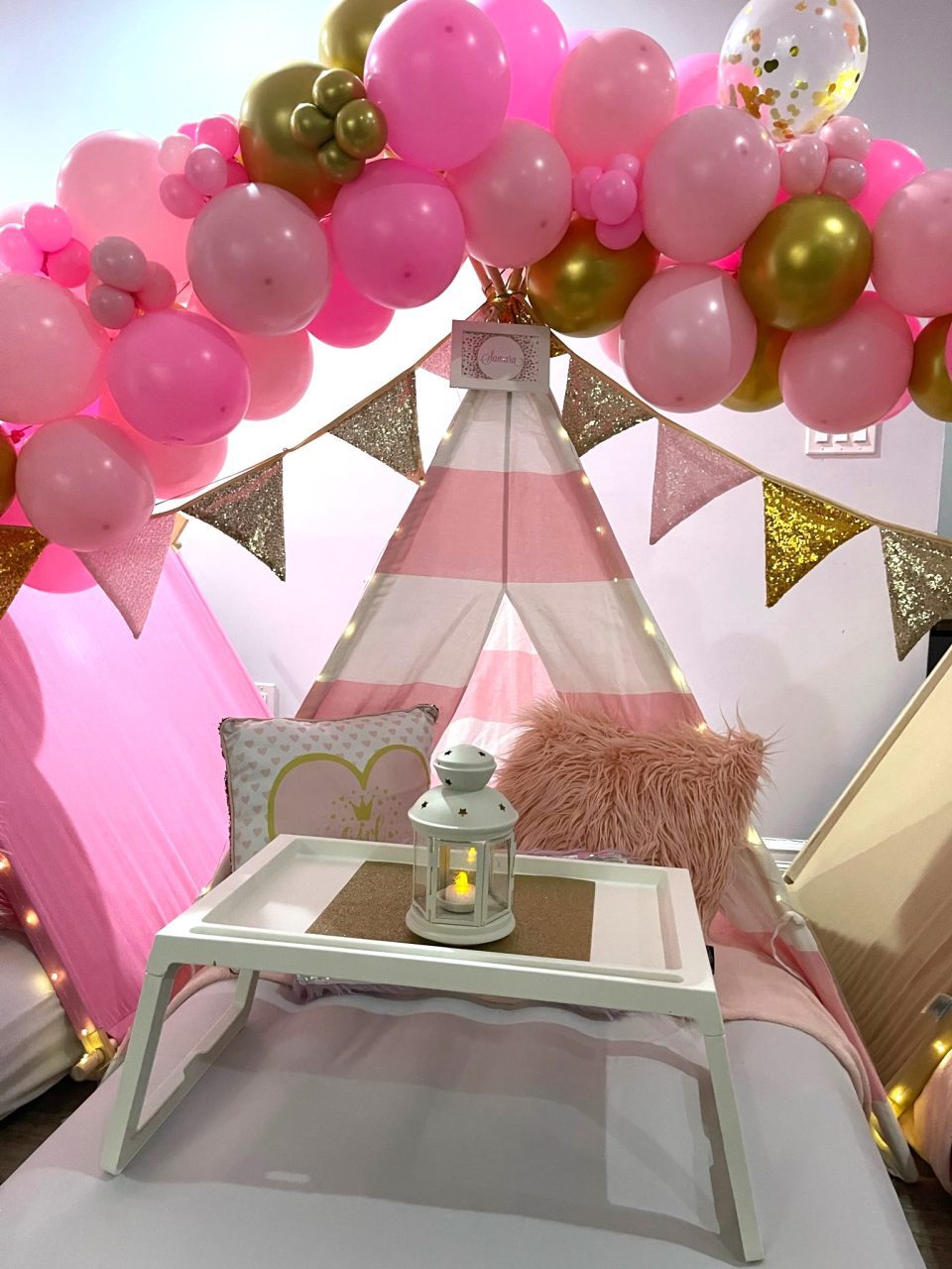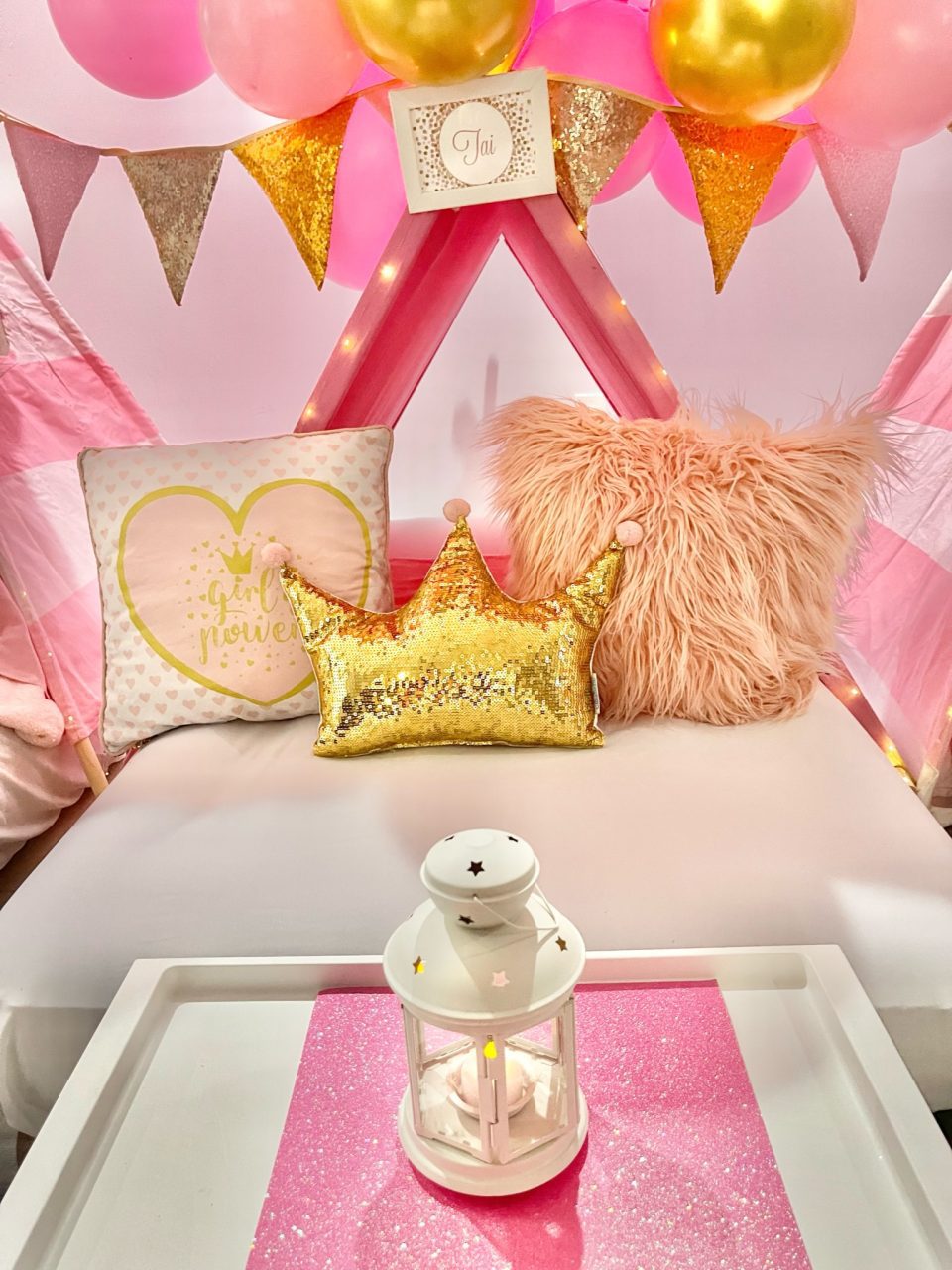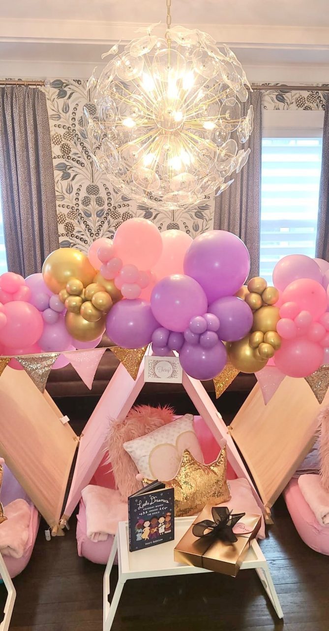 Our Girl Power themed sleepover is a night adorned with glitter and glam that will create beautiful memories. To all of the princesses, bring on your power! A night adorned with glitter and glam in shades of pink and gold will create beautiful memories you’ll never forget.