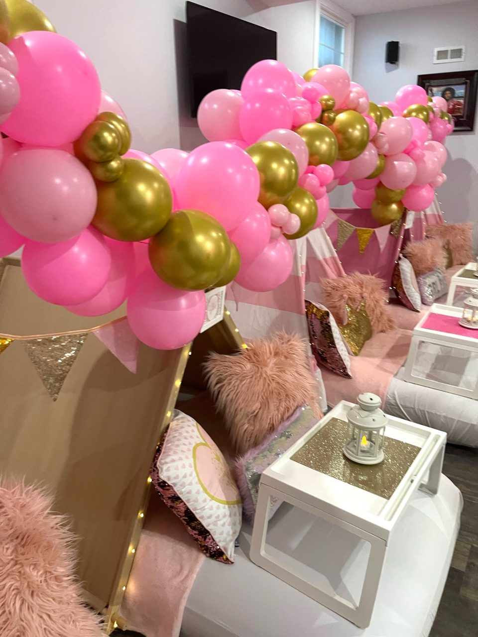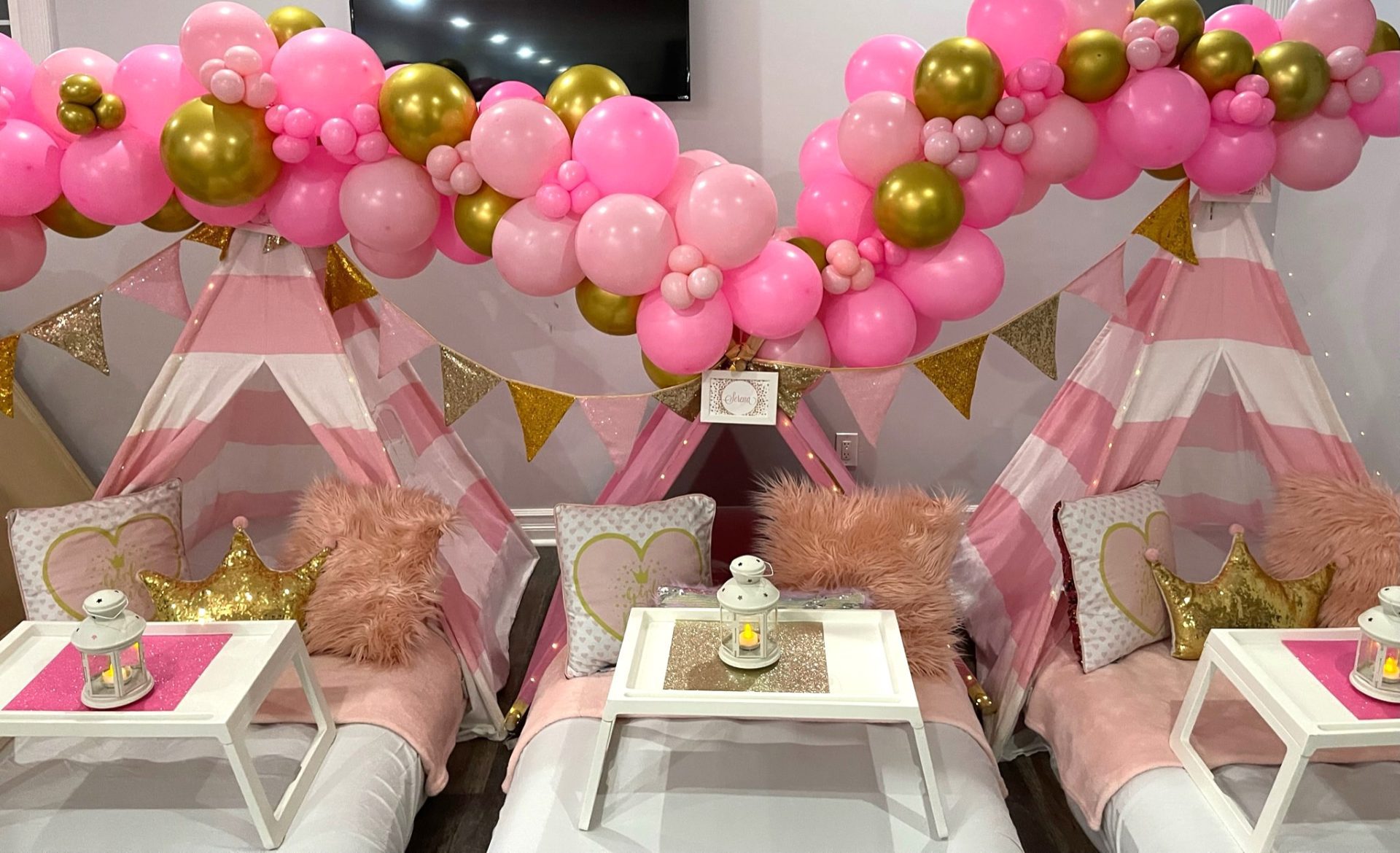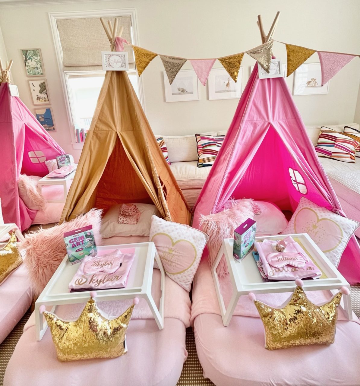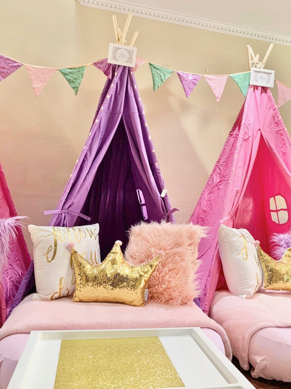 Our Girl Power themed sleepover is a night adorned with glitter and glam that will create beautiful memories. To all of the princesses, bring on your power! A night adorned with glitter and glam in shades of pink and gold will create beautiful memories you’ll never forget.