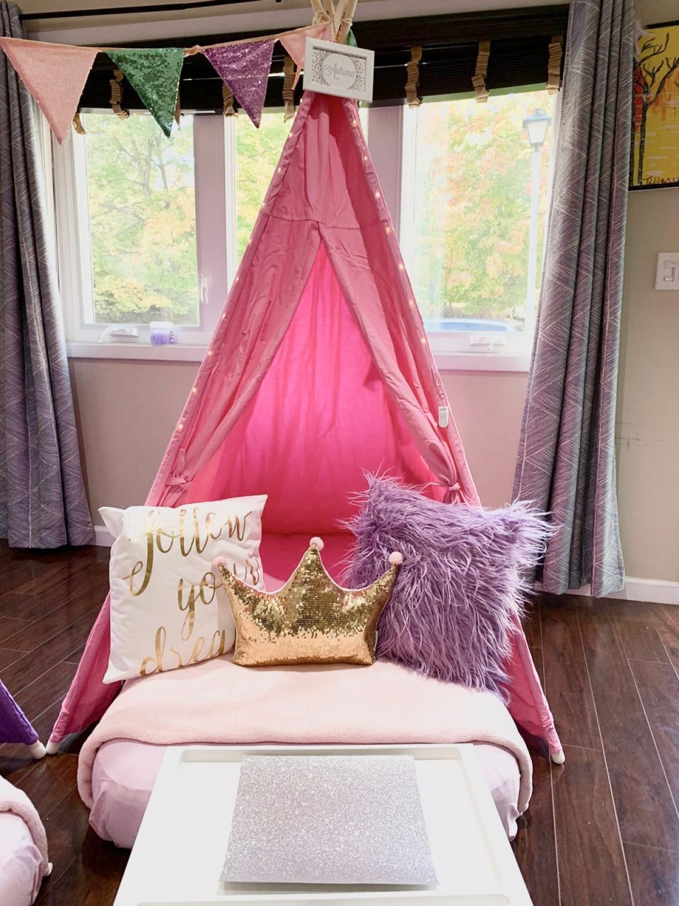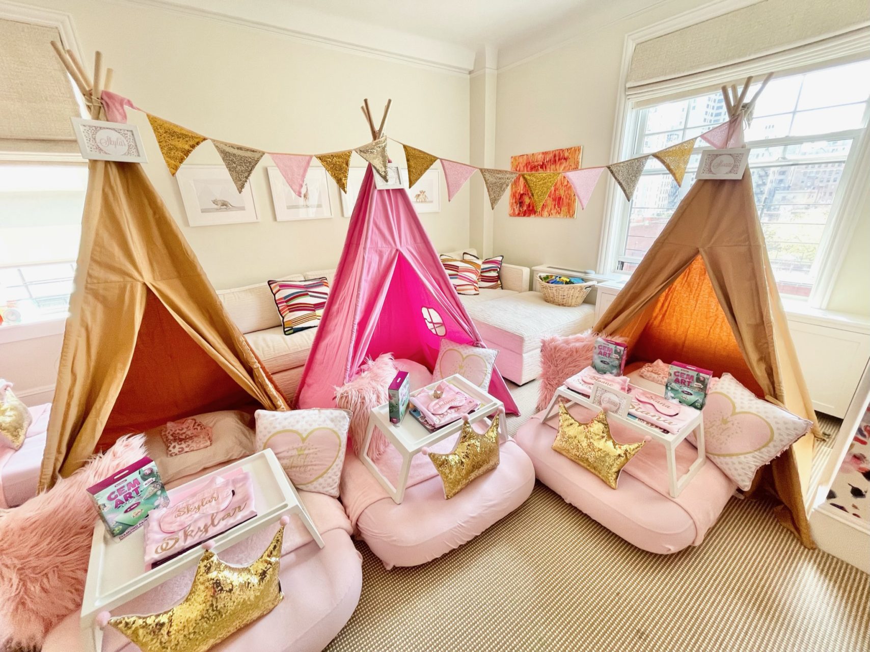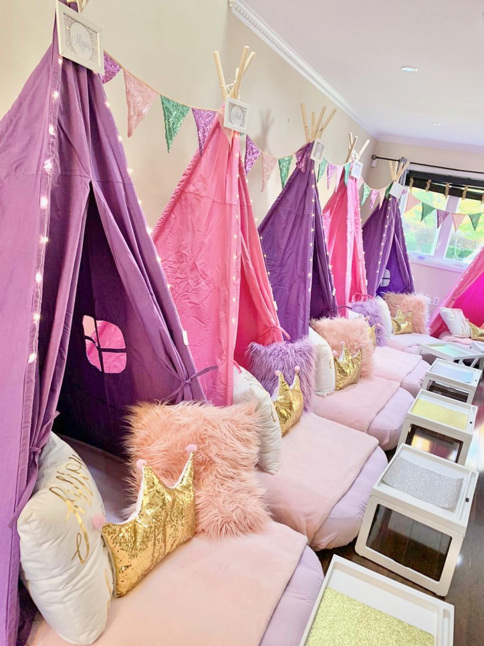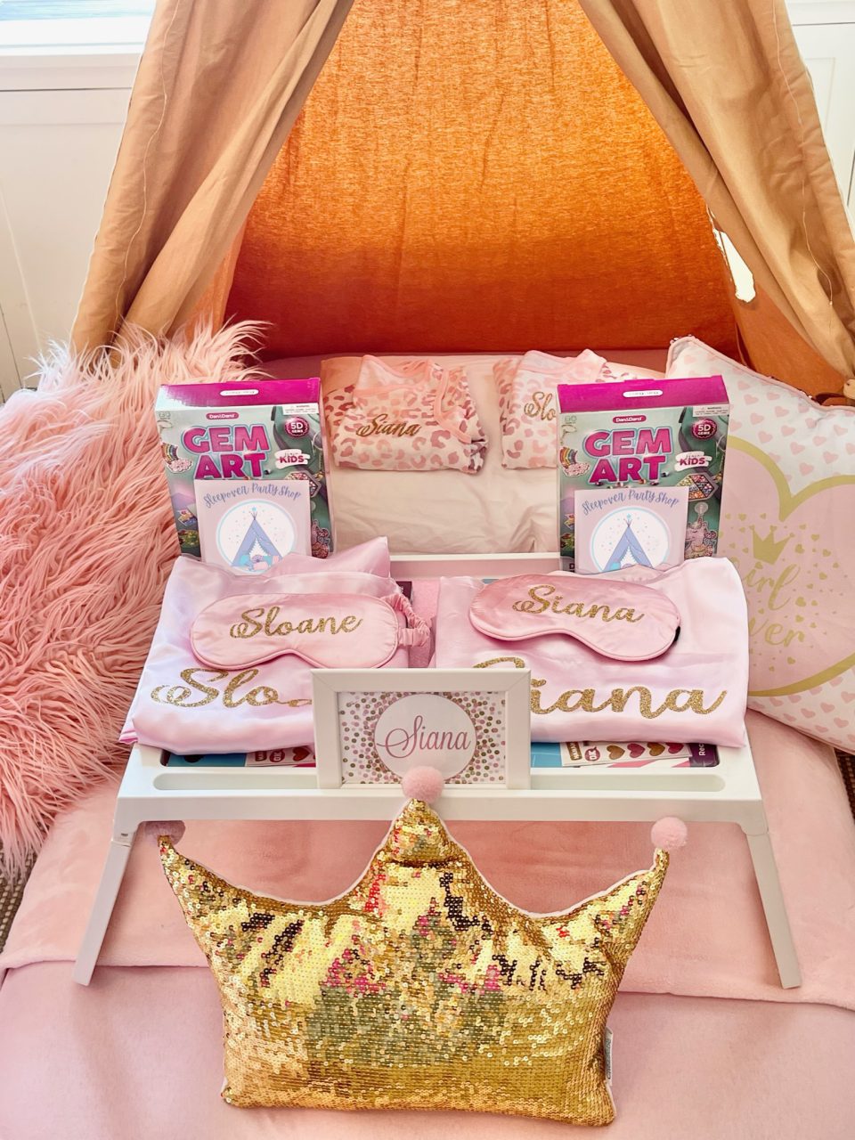 Our Girl Power themed sleepover is a night adorned with glitter and glam that will create beautiful memories. To all of the princesses, bring on your power! A night adorned with glitter and glam in shades of pink and gold will create beautiful memories you’ll never forget.
