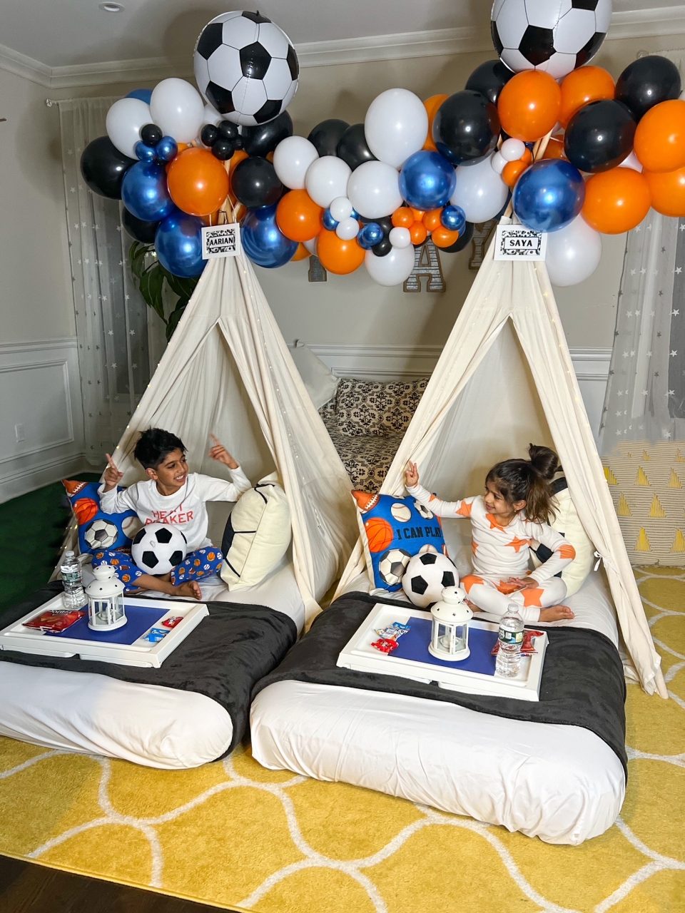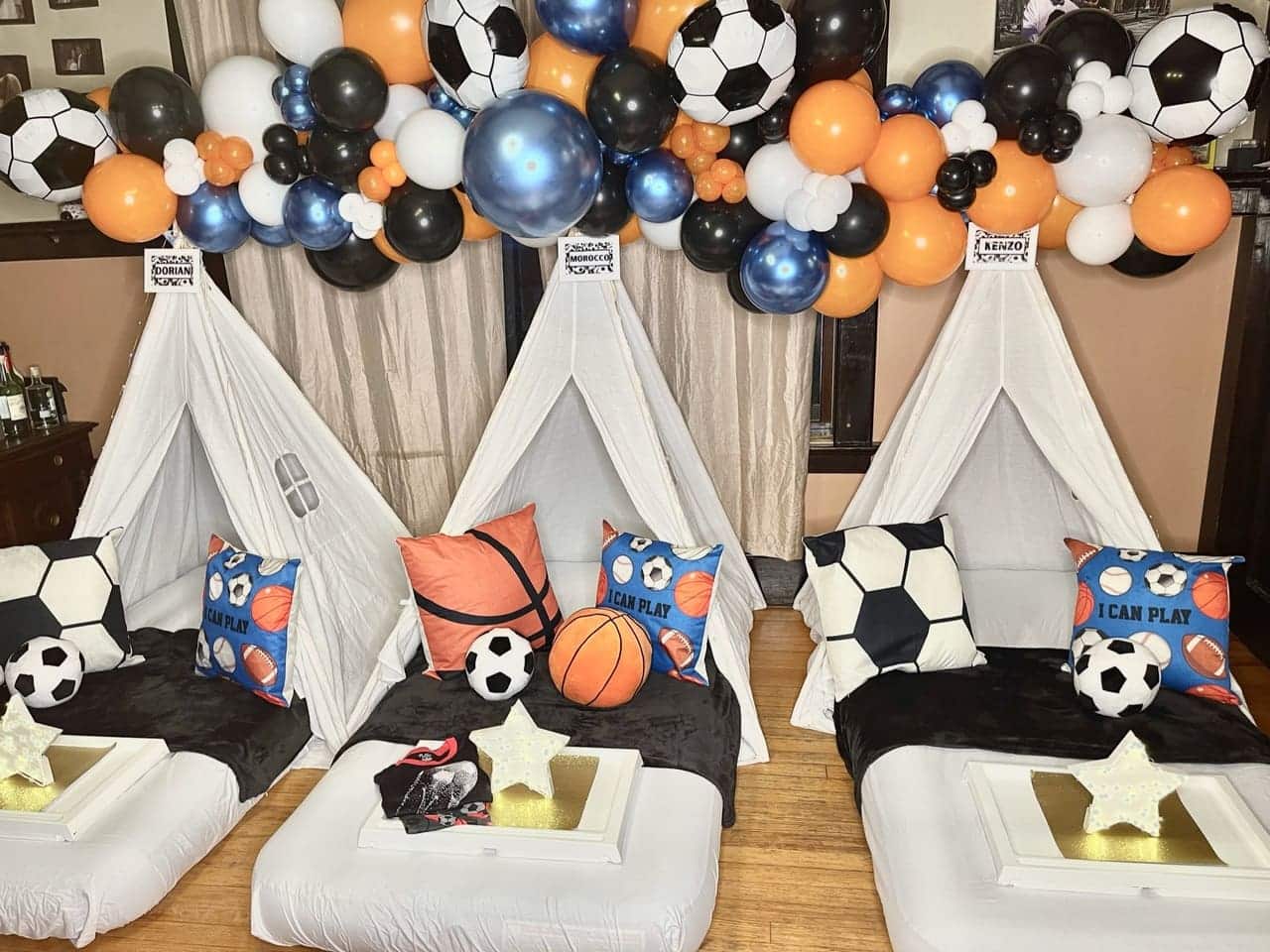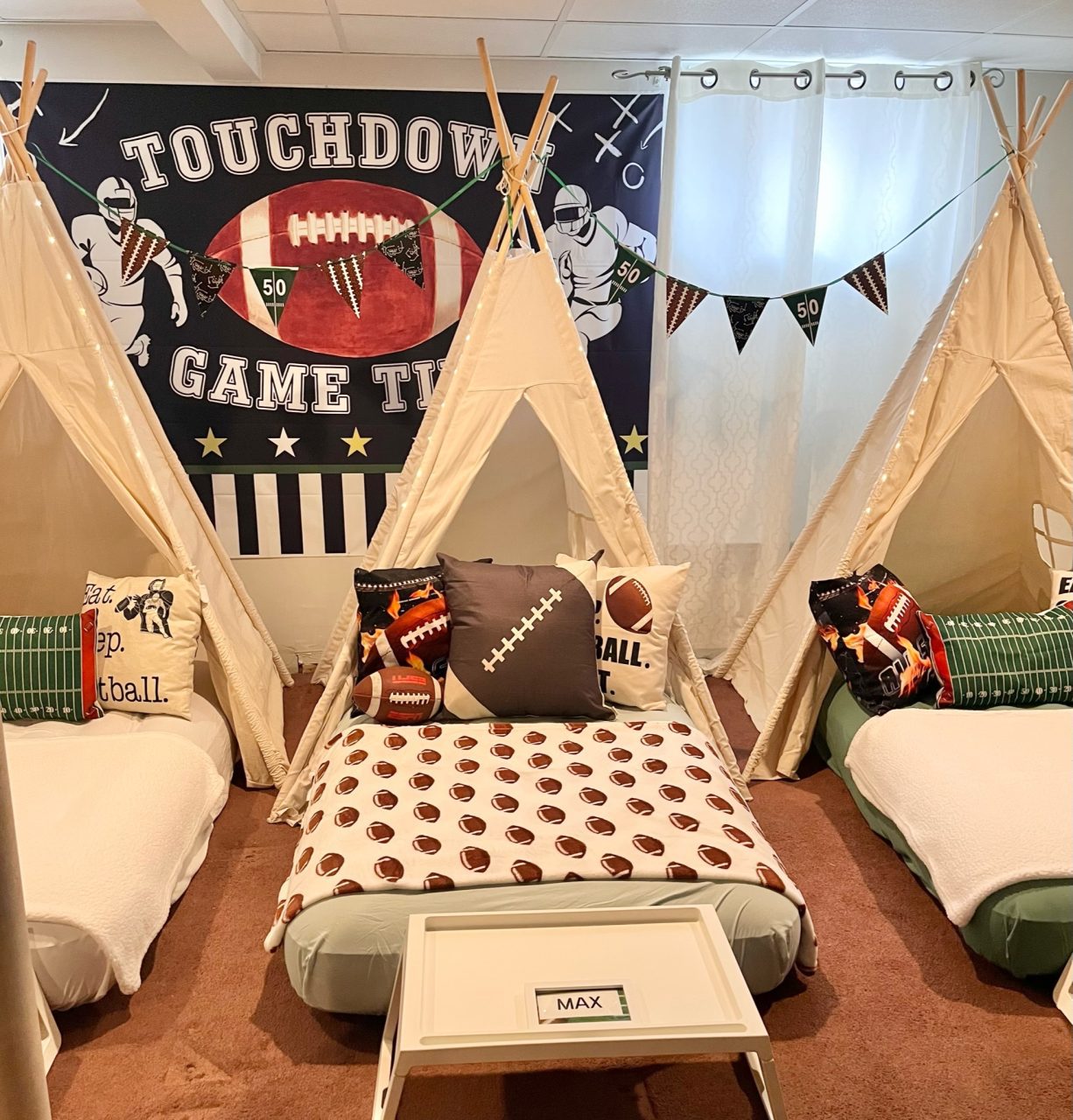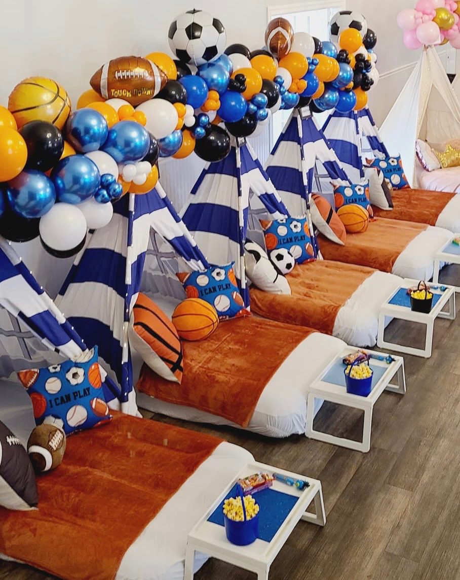 Gear up for an action-packed sleepover with our Sports-themed extravaganza. Immerse in the vibrant energy of your favorite sports with a dynamic palette and decor. Whether it’s the excitement of the game or the thrill of victory, this theme brings the stadium atmosphere to your sleepover. Let your child and friends celebrate their favorite teams and sports heroes, turning the night into a winning experience filled with camaraderie, competition, and endless fun.