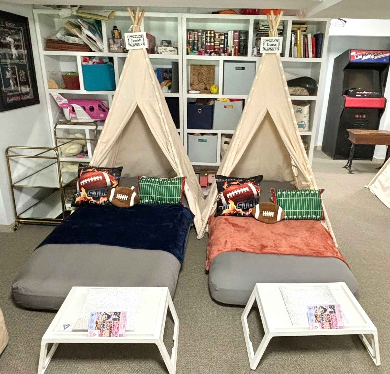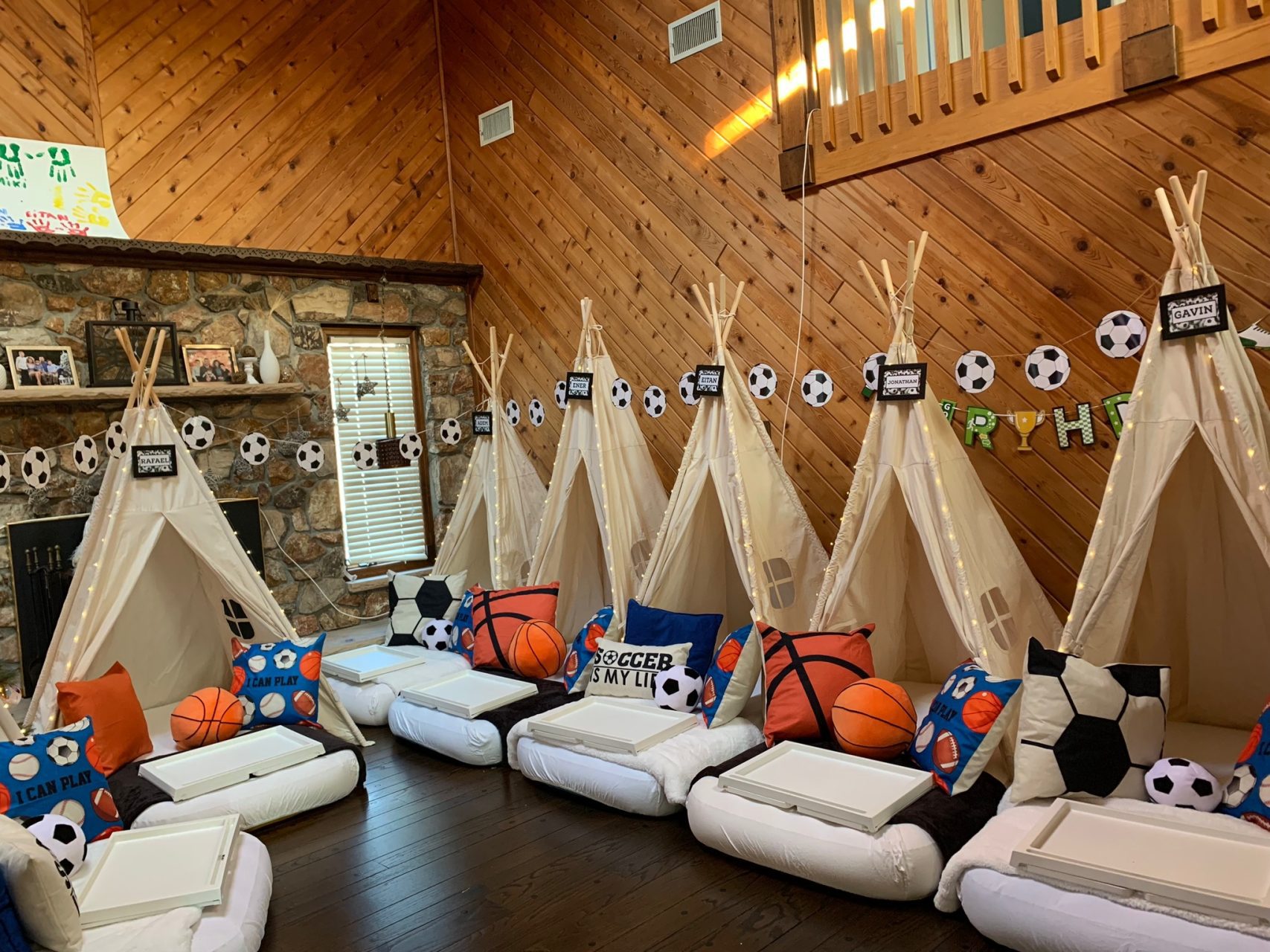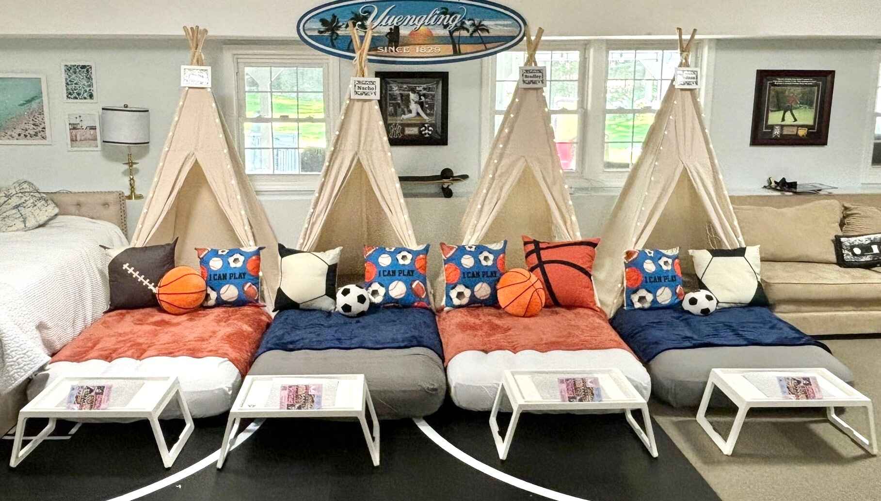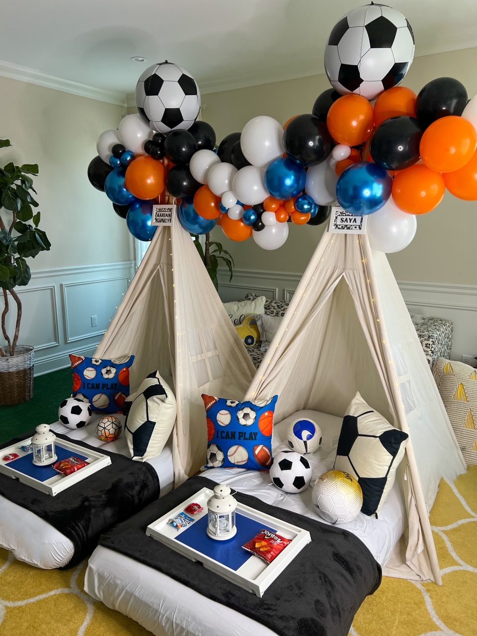 Gear up for an action-packed sleepover with our Sports-themed extravaganza. Immerse in the vibrant energy of your favorite sports with a dynamic palette and decor. Whether it’s the excitement of the game or the thrill of victory, this theme brings the stadium atmosphere to your sleepover. Let your child and friends celebrate their favorite teams and sports heroes, turning the night into a winning experience filled with camaraderie, competition, and endless fun.