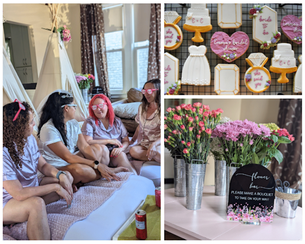 Our packages include everything you need for a night of games, laughter, and fabulous. Set the scene with beautiful decor, comfy seating, and all the essentials for a night of celebration. Add gourmet snacks, custom-themed cookies, and a flower bar experience to elevate the festivities. With our Bachelorette Blowout package, the bride and her friends can enjoy a night of pure fun and excitement.